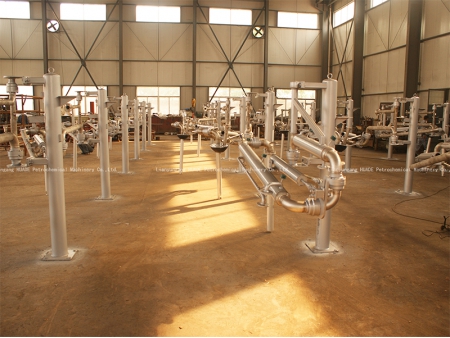 - Отрезки трубопровода соединены 4-мя шарнирными соединениями, что обеспечивает гибкость, необходимую для слива/налива жидкостей в любые танкеры на рабочей зоне;