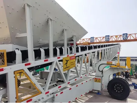 - Боковая часть конвейера и телескопический желоб обеспечивают точную погрузку и предотвращают риски высыпания, что сокращает потерю материала.