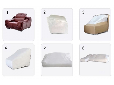 Шаг 1: Диван упаковывается в пузырчатую ПЭ пленку и многослойный мешок из пористого ПЭ.