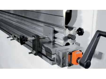 Задний упор предлагает возможности ручной вертикальной регулировки, а стопорные пальцы можно точно настроить для обеспечения точного позиционирования.