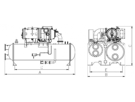 - 1.Номинальная холодопроизводительность стандартная: стандартная: температура воды на входе/выходе испарителя 12℃/7℃, температура воды на входе/выходе конденсатора 30℃/35℃, коэффициент загрязнения 0.088м²•℃/кВт;