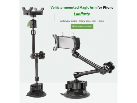 Компания LanParte создала собственную запатентованную разработку в виде телефонного держателя PC01, который включает в себя основание на присоске с одним замком диаметром 3,3 дюйма, удобный 10-дюймовый шарнирный рычаг ("волшебный рукав") и зажим для телефона с фиксацией/разблокировкой в одно касание. Две металлические кнопки сверху позволяют легко открыть держатель телефона одной рукой, а силиконовая накладка предотвращает скольжение телефона.