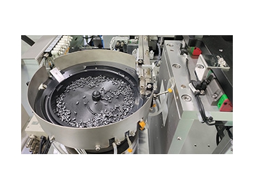 Данная машина разработана специально для намотки катушек синфазных дросселей. Для достижения максимальной рабочей эффективности и высокой точности, намоточные шпиндели XYZ и поворотный стол оснащены серводвигателями. Благодаря наличию высокоточного серводвигателя, сердечник катушки индуктивности может транспортироваться посредством поворотного стола к различным производственным станциям для осуществления соответствующих рабочих процессов и процессов обработки, включая автоматическую намотку и точечную сварку. Машина для намотки синфазных дроссельных катушек общего назначения оснащена вибрационным питателем, обеспечивающим непрерывную и точную подачу сердечников катушек индуктивности. Доступны одинарный и двойной типы катушечных обмоток. Точный подсчет осуществляется посредством системы управления ПЛК. Максимальная скорость намотки составляет до 1200 шт/час.