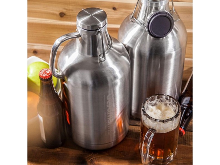 - Надёжная металлическая ручка обеспечивает удобство переноски, чтобы взять гроулер с любимым пивом в любую поездку.