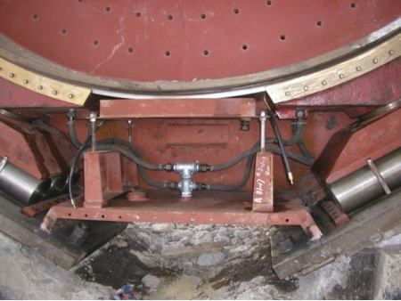Подшипник скользящего башмака может автоматически регулировать позицию при вращении мельницы, путем осевого движения вращения башмака и цилиндра.