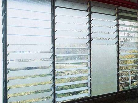 Стеклянные панели крепятся к направляющим и управляются с помощью одной ручки, которая позволяет наклонять их одновременно в открытое или закрытое положение. Эта функция позволяет регулировать количество воздушного потока, поступающего в помещение, обеспечивая эффективный способ его вентиляции. Жалюзийные окна могут использовать различные типы стекла, такие как прозрачное, ультрапрозрачное, цветное, узорчатое, покрытое пленкой и матовое стекло, что делает их универсальными для различных вариантов применения в домах и коммерческих зданиях.