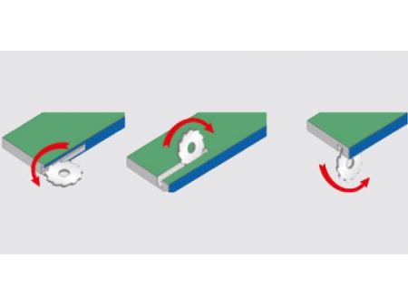 Скребок обеспечивает гладкую чистовую обработку кромок из ПВХ за счет удаления дефектов, возникших в результате предыдущих операций фрезерования на верхней и нижней части кромки.