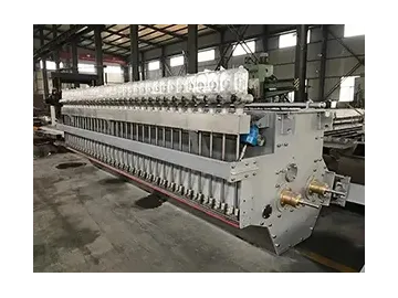 - Напорный ящик открытого типа оснащен устройством разбавления воды для достижения регулировки базового веса в поперечном сечении.