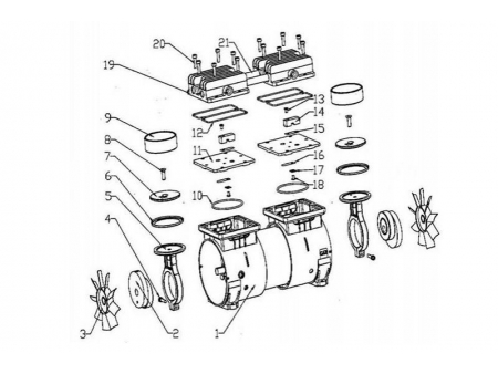 | 1. Воздушный фильтр | 2. Компрессор | 3. Переключатель давления |