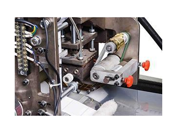 Заготовки помещаются на стол для переворачивания, закрывается застежка, затем подаются в устройство горячей запайки для запечатывания краев.