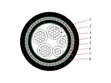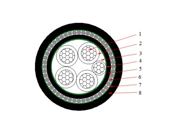 | 1. Токопроводящая жила: медная или алюминиевая, 1 класса: одножильная , или 2 класса: связанная 2. Изоляция: поливинилхлоридный ПВХ 3. Внутренняя оболочка: поливинилхлоридный ПВХ 4. Оплётка : немагнитная стальная проволока 5. Связующая лента: негигроскопичный материал 6. наружная оболочка: поливинилхлоридный ПВХ | 1. Токопроводящая жила: медная или алюминиевая, 1 класса: одножильная, или 2 класса: связанная 2. Изоляция: поливинилхлоридный ПВХ 3. Наполнитель: негигроскопичный материал 4. Связующая лента: негигроскопичный материал 5. Внутренняя оболочка: поливинилхлоридный ПВХ 6. Оплетка: низкоуглеродистая стальная проволока 7. Связующая лента: негигроскопичный материал 8. Наружная оболочка: поливинилхлоридный ПВХ |