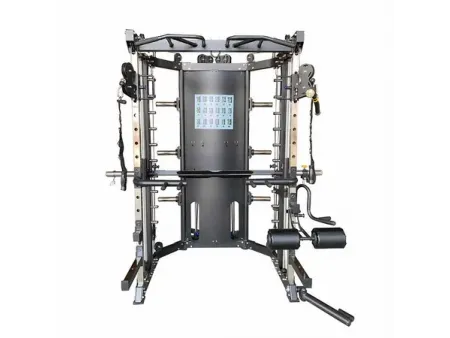 Мультистанция D02 предлагает комплексную платформу для тренировок, идеально подходящую для выполнения широкого спектра упражнений, включая разгибания трицепсов, сгибания рук на бицепс, тяги широчайших мышц, жимы от груди, приседания, тяги, подъемы дельтовидных мышц и проработку мышц ног. Силовой комплекс оснащен функцией приседания и встроенной машиной Смита, оснащенной страховочным снаряжением для дополнительной безопасности во время интенсивных тренировок.
