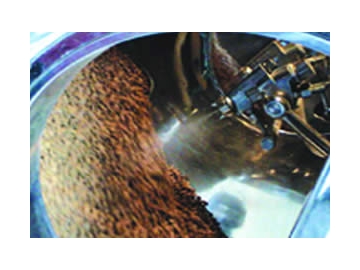 Высокоэффективная машина для нанесения пленочного покрытия на таблетки идет с устройством автоматической подачи и разгрузки, позволяющим не допустить перекрестное загрязнение. Под действием мешалки происходит постоянное плавное вращение таблеток, подаваемых направляющей плитой, что исключает падение и раскалывание таблеток, обеспечивая высокое качество готовой продукции. Узкая поверхность направляющей плиты устраняет прилипание покрывающего материала с ее поверхностью, это позволяет эффективно использовать покрывающий материал, тем самым улучшая весь технологический процесс.