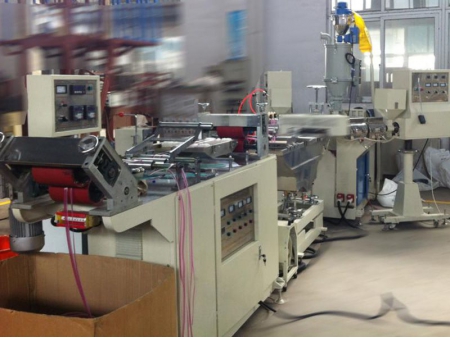 Экструдер состоит из чиллера (охладителя), одного основного экструдера, двух мини-экструдеров JL30 для нанесения цветной полосы, экструзионной головки, автоматической системы замены фильтра, литейной формы, резервуара для воды (для формирования застежки при постоянной температуре), системы осушения, устройства для воздушной сушки с вакуумной воздуходувкой, устройства скрепления, устройства застежки и устройства автоматической перемотки.