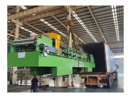 Профилегибочная машина для производства кровельных панелей из глазурованной черепицы YX34-190-760 оснащена гидравлическим штамповочным агрегатом для производства кровельных панелей из глазурованной черепицы шириной 760 мм и толщиной 0.4-0.6 мм. Максимальная производительность машины составляет 8 м/мин.