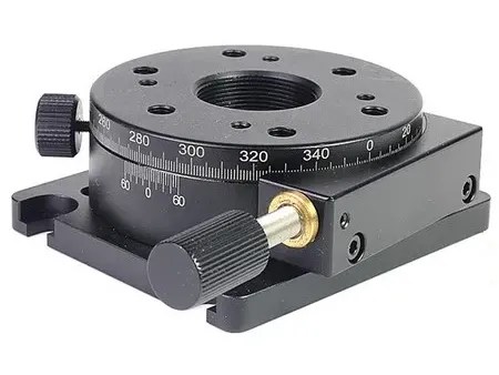 Прецизионный поворотный транслятор (поворотная платформа) имеет прецизионную конструкцию системы вращающегося вала, обеспечивающую высокую точность и стабильность. Платформа может вращаться на 360° и оснащена грубой и точной регулировкой, а также червячной регулировкой. Диаметр платформы варьируется от 29 до 100 мм, а также доступны вращающиеся ступени полой конструкции для передачи света или подключения к другим продуктам.