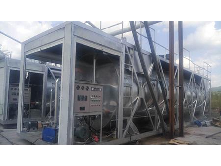 - Встроенное устройство нагревания эффективно передаёт тепло, с помощью пропуска термального масла через нагревательную спираль и многочисленные трубы в камеру нагрева, таким образом внутренняя температура стремительно повышается для ускоренной плавки битума.