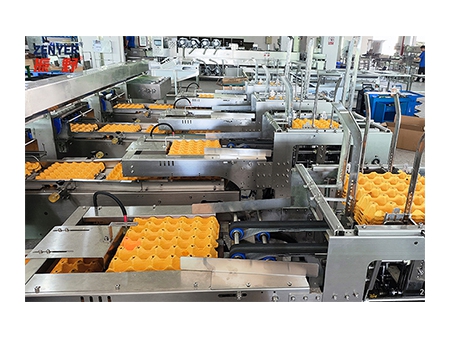 Стандартная конфигурация включает 4 автоматические упаковочные машины и 1 ручной стол для сбора яиц. Количество упаковочных машин можно регулировать в соответствии с вашими потребностями. Отсортированные яйца автоматически распределяются по соответствующим машинам для заполнения лотков на основе настроек системы. Автоматические упаковочные машины поддерживают коробки для яиц и лотки в различных конфигурациях, включая 2×5, 2×6, 3×5, 3×6 и 5×6. Пользователи могут выбирать бумажные лотки, пластиковые лотки или пенопластовые лотки в зависимости от своих требований. Каждая автоматическая упаковочная машина обрабатывает один сорт яиц.