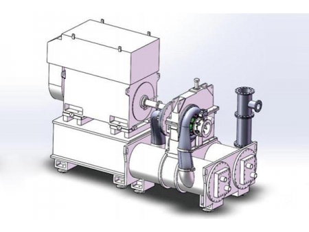 Ведущий мотор приводит повышающий редуктор в действие для реализации высокой скорости вращения импеллера. После чего среда проходит лопаточный диффузор, спиральный отвод и диффузную трубу для диффузии и коммутации. После этого среда попадает в охладитель для охлаждения. После следует следующая ступень компрессии, в конце которой среда выпускается из задней части, охлаждённой до окончательной степени.