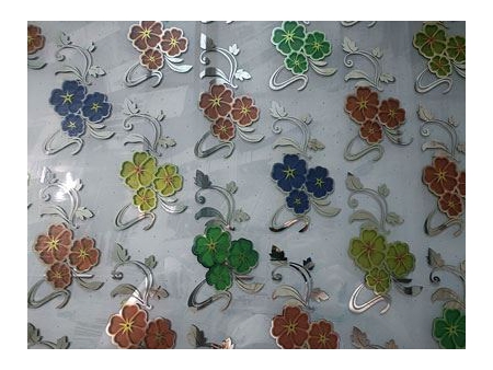 Художественное стекло с титановым покрытием привносит уникальную красоту в домашний декор. Оно изготавливается с использованием обычного прозрачного флоат-стекла, ультрапрозрачного флоат-стекла или матового стекла в качестве основы и нанесением желаемого рисунка на поверхность стекла с помощью технологии трафаретной печати. Затем на поверхность стекла наносится слой титановой пленки с помощью технологии магнетронного распыления. После этого чернила, напечатанные с помощью трафаретной печати, смываются раствором щелочи соответствующего состава, оставляя на поверхности стекла яркий узор из титановой пленки. Его декоративный эффект лучше, чем у рельефного стекла, оставляя освежающее послевкусие. Это новый вид декоративного стекла для интерьеров.