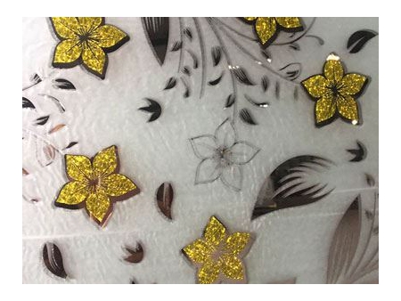 Процесс включает в себя печать ледяных цветов на гладкую поверхность матового стекла с помощью трафаретной печати. Ледяные цветы могут быть любого цвета по вашему выбору, например, золотого, синего, зеленого, красного, фиолетового или многих других. Затем слой высокотемпературных чернил наносится поверх ледяного цветка для дополнительной защиты. Затем стекло отправляется на линию магнетронного распыления, где на край ледяного цветка наносится слой титановой пленки. Наконец, защитные чернила смываются раствором щелочи, открывая потрясающий продукт - художественное стекло "ледяной цветок" с титановым покрытием. Это, безусловно, сделает ваш декор более великолепным, добавив немного изысканности пространству.