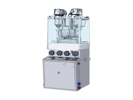 Ротационный таблеточный пресс ZPW23 основном используется для производства таблеток различной формы, таких как двухслойных таблеток, таблеток с сердечником, кольцевых таблеток. В турель максимально устанавливается 23 штук пуансонов и матриц, при этом пуансон состоит из двух съемных секций. За один цикл вращения оборудование способно выдать 23 таблетки.