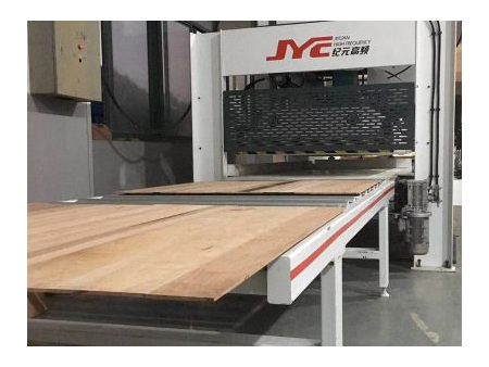 Высокочастотный кромкооблицовочный станок с конвейером предназначен для склеивания деревянных изделий, углового соединения под углом 90 градусов, стыка панелей мебели, облицовывания кромки дверей, линейного стыка Г-образных дверных пеналов.